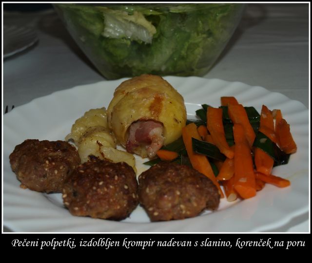 Včeraj: juha, pečena rebra, pečen krompir z bučko, solata.