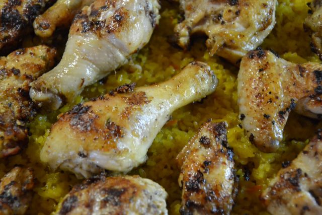 majaosDanes smo jedli začinjenega pičanca na rumenem rižu, zraven je bil pretlačen mungo fižol in zelena solata ter rukola v solati z naribanim korenjem.