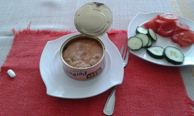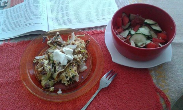 Danes pa samo velika skleda mešane solate - berivka, paradižnik, paprika, s tuno, sirom, majonezo...