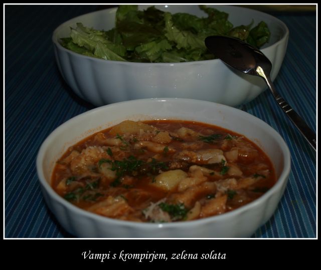 Sreda: orjaška sipa v pečici s domačim krompirjem, korenjem in kolerabico in skleda zelene solate
