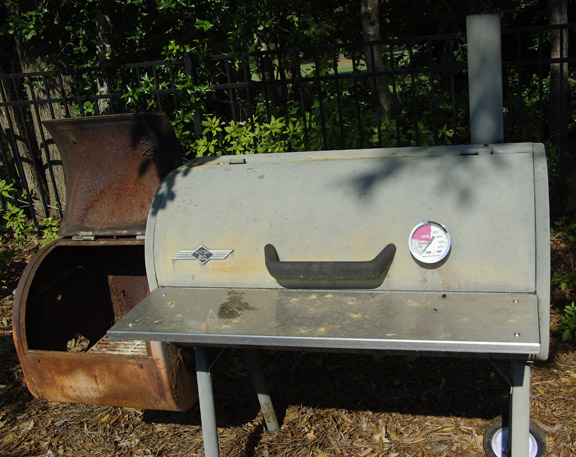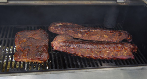 Včeraj smo imeli nekoliko več časa in je zato padla odločitev, da bomo dimili: svinjske reberce (baby back ali tisti del, ki se sicer drži hrbtenice in ima več mesa) in goveja prsa (brisket). Smoker smo zakurili ob pol desetih zjutraj, ob pol štirih zvečer je meso padalo od kosti.