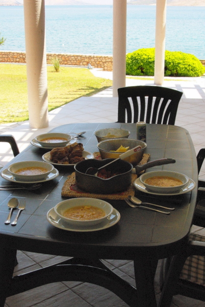 Danes: boranja iz prvega domačega fižola, domač kruh,breskve.