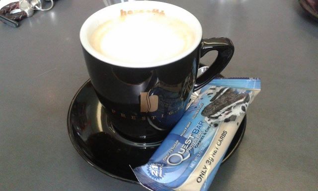 Na obisku pri starših v Sl.Bistrici. Kafica v kavarni usred mesteca. Strežejo tudi torte iz POHORSKE KAVARNE?!?!?! A nisem ljubitelj tort, takolele sem izbral kar meni ljubi QUEST BAR. Tokrat peanutbutter muffinček. NOM