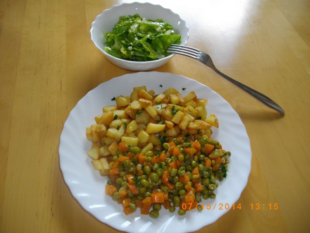 Včeraj: Fižolova juha s korenčkom in pražena jetrca s čebulo, solata.