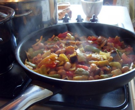 Danes: riž in pražena zelenjava (bučke, jajčevci, svež fižol, paprike, paradižniki...)