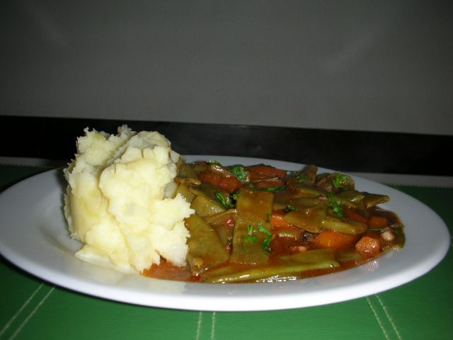 Danes: omaka iz stročjega fižola in korenja, pire krompir