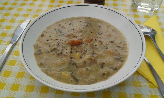 Včeraj kremna fižolova juha in kruh, svež paradižnik, zvitki iz jajčevcev