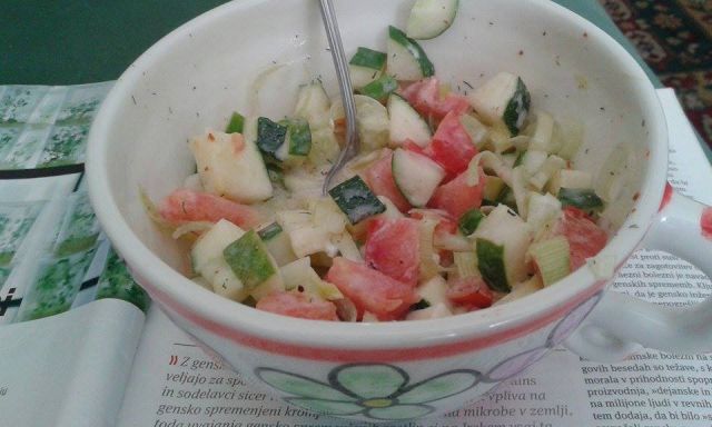 ), kumarična solata, teran in voda