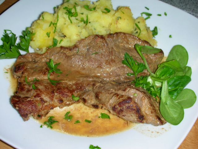 *popravek, namesto krompirjeve solate, sem naredila v voku praženo zelje in šampinjone