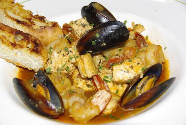 Ribja čorbica, ki je imela z bouillabaisse skupen koromač in žafran, po želji popečeni kruhki za tunkanje. Sladica: Domač pomarančni sladoled za priviligirane.