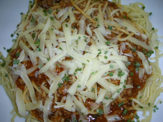 Danes: špageti z bolones omako,zelena solata,pecivo kinder paradiso.