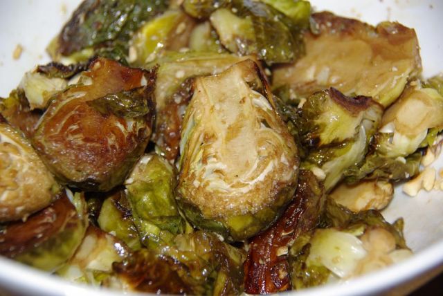 Solato imava rada, a se jo hitro naveličava, zato brstični ohrovt, posoljen, popečen v pečici, in pokapljan z žlico olja. Na koncu dodan balzamični kis, poper in praženi, strti orehi. Zmrznjeno grozdje spet za desert. Izgleda, da ga je bilo veliko, ker letos je poceni, kot še nikoli. ![]()