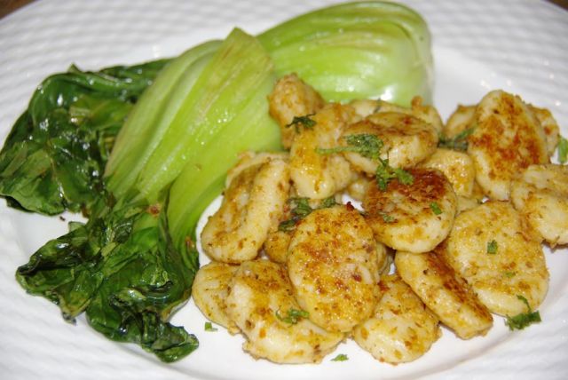 Danes: Krompirjevi njoki (jih že doooolgo nisem delala) v pestu iz sušenega paradižnika in orehov ter bazilike in parmezana. Poleg bok choy malo pokapljan z limono, sol poper. Ni rabil nič drugega zaradi bogatega okusa pesta. Še vedno nama ni do solate.