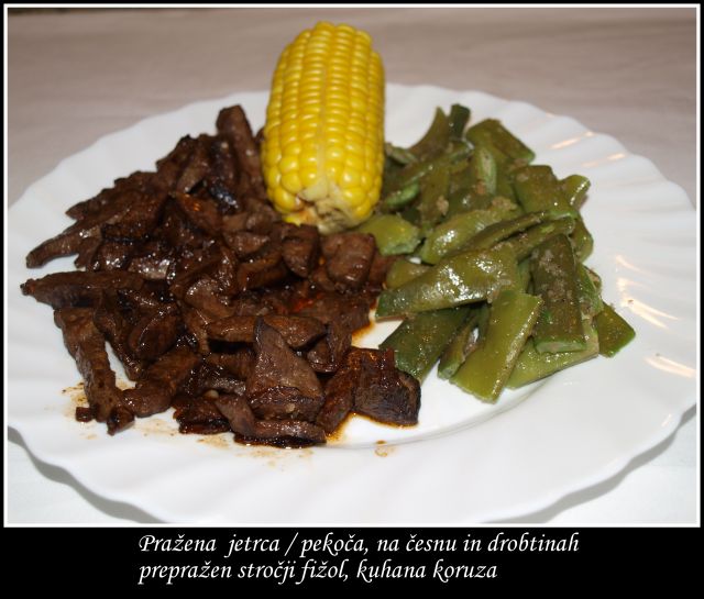 Vremenu primerno je bilo tudi nadaljevanje: kislo zelje (lanska zaloga doma kisanega), svež, luščen kuhan fižol z ocvirki in krvavice iz zamrznjene zaloge.
