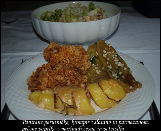 Danes: prisiljeno zelje in skutine palačinke, malce kasneje pa pečene puranje bedrce, njoki in fižolova solata.