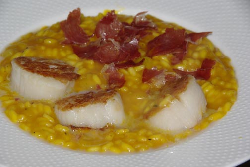 breskvaDanes: Rižota iz koromača in pireja buč, jakobove pokrovače in popečena bržola. ![]()