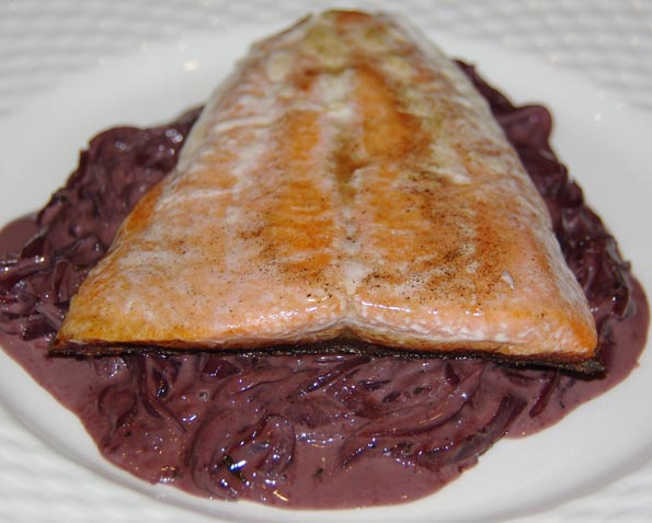 Danes: Poleg paradižnikovo kumarične solate z malo feta sirom losos na kremni čebuli.