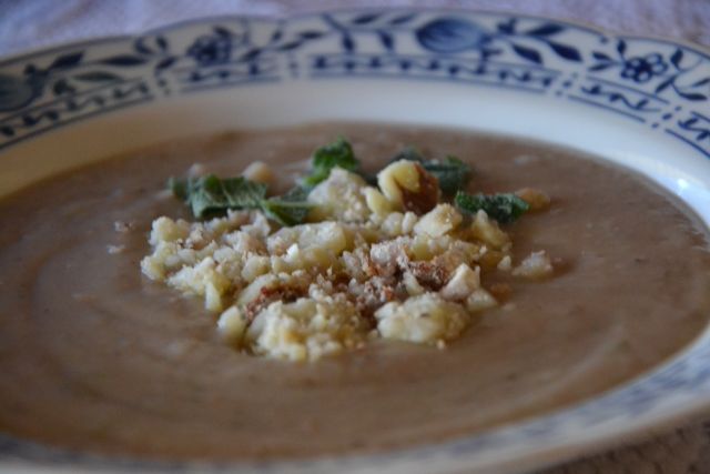 kostanjeva juha s krompirjem in različne jedi z žara