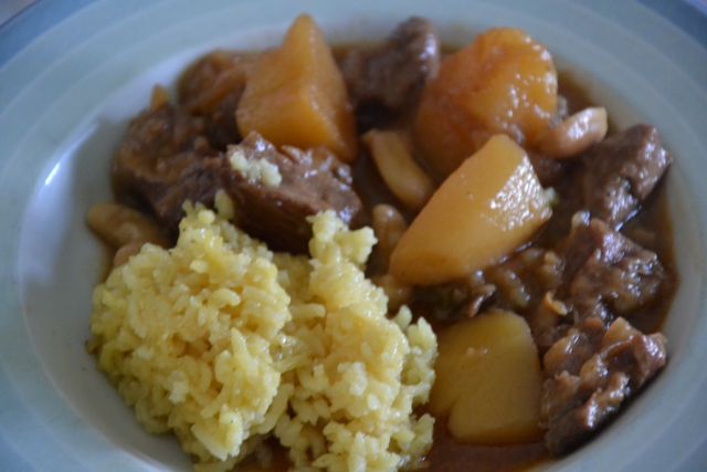 musaman curry (govedina, krompir, indijski oreški, kuhano v kokosovem mlenku s tamarindom)