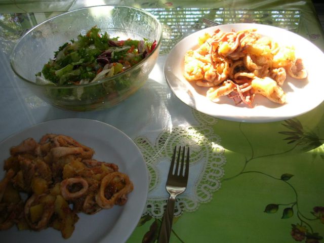 Včeraj: juha, velika skleda mešane solate, meso iz žara