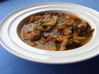 Včeraj zelenjavna enolončnica bi vrjetno kvalificirala za paleo (zdaj so vsi nori na to) in popečen česnov kruh (kruh, rahlo namazan z maslom, popečen nariban s česnom ter rahlo posipan s parmezanom.