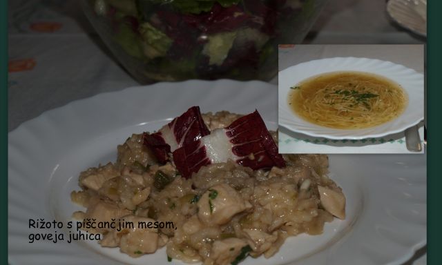 Včeraj: juha, sv. pečenka (kupljena), riž, solata (endivija, rdeči radič in kuhan krompir).