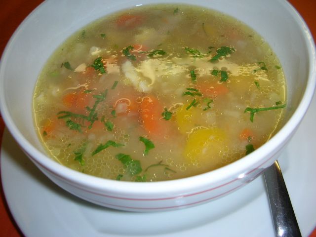Danes pri nas: goveja juha s palačinkami od včeraj, krompirjeva solata in losos.