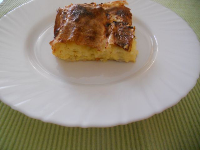 Včeraj lazanja in skravžana solata s krompirjem in koruzo.