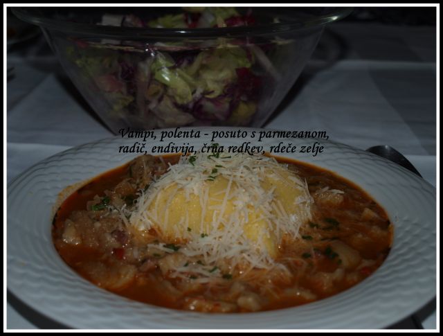 zabeljena z ocvirki, radič v solati
