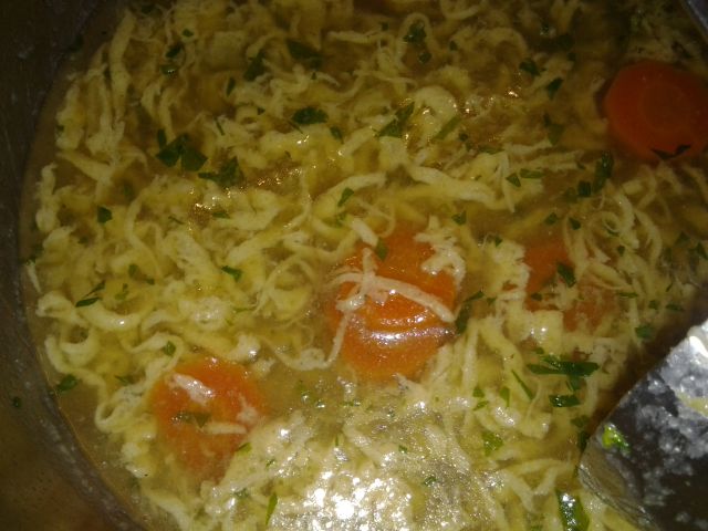 včeraj zelenjavno-gobja-mesna enolončnica (sem praznila hladilnik in zmrzovalnik), ki bo še za jutri in svež pečen kruh