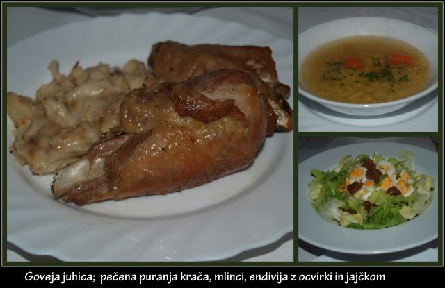 satilonVčeraj segedin in potica, danes pa juha iz blitve, puran z zelenjavo, zeljna solata in riž.