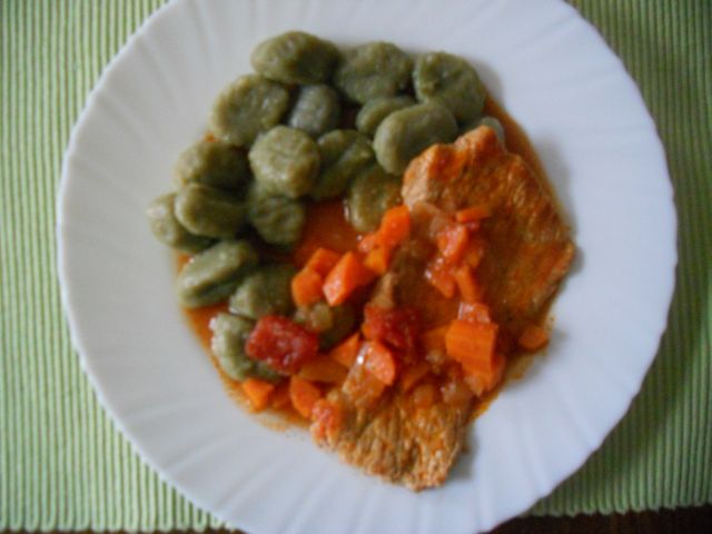 Danes: svinjki zrezki z zelenjavo, špinačni njoki, solata