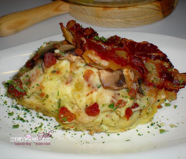 med brskanjem po hladilniku in shrambi nastala pita iz krompirja in šampinjonov ...