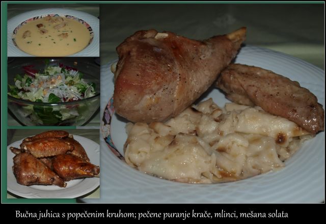 kasneje pa bo pečen odojček, zraven pečen krompir v koži, stroji fižol na solato