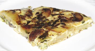 Danes: Mešana solata s feta sirčkom in hruškami. Fritata s krompirjem, porom, gobami in andouille. Prisežem, da por ni bil zažgan, kot izgleda na sliki fritate.