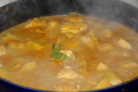 Mussaman-tajski-curry-piščanec, sem dala še malo več krompirja, ki je visel v hladilniku že od konca novembra, zato ne bo zraven nič riža. Vietnamski zelenjavni zavitki namesto solate (korenček, rumena paprika in rdeče zelje) z razredčeno satay polivko. Polivka je bil apripravljena par dni nazaj, curry pasta pa iz zmrzovalnika. Če ne bi delala zavitkov, bi bila kuhinja v tem času tudi pospravljena.