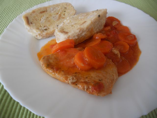 Danes: kruhov cmok, svinjski zrezki v korenčkovi omaki, mešana solata