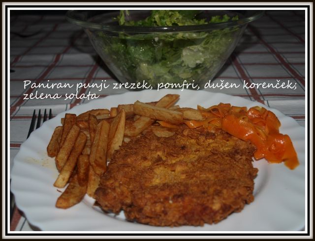 jo bom pripravila. Pri nas danes za kosilo puranji koscki v smetanovi omaki, pecena polenta, mesana solata, kokosov biskvit kot baunty