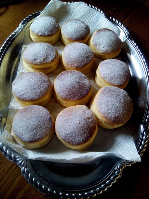 Včeraj na praznovanju rojstnega dne, za posladek domači krofi in krhki flancati.