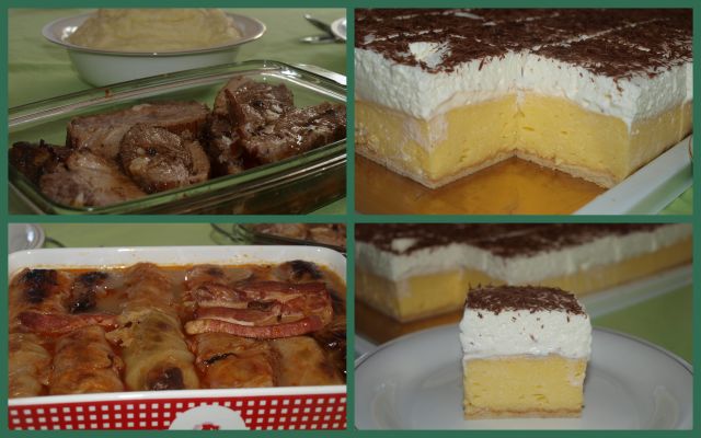 Marinirana sv. rebrca, pire krompir, sarma, kremšnite (namesto torte).