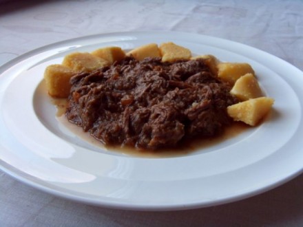 BalenkaDanes: popečeni koščki polente in...ne vem imena, nadgradnja golaža morda