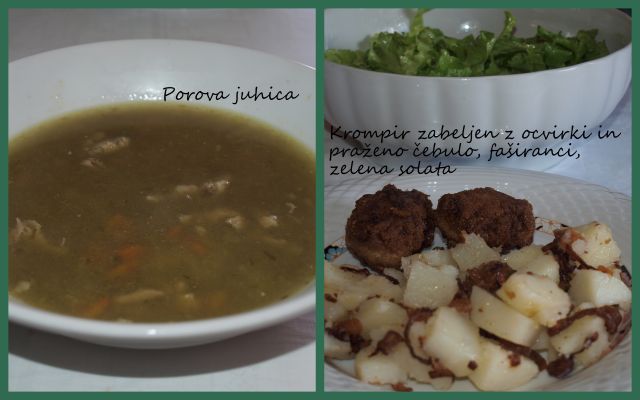 Sporočilo je spremenil(a) Dragička dne 07. 2015 13:18Pri nas danes goveja juha z zdrobovimi cmoki, pečen krompir, pečeni kosi piščanca, tel. kare, skleda regrata in mešana solata