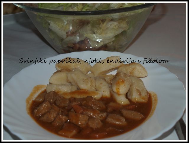 Svinjski paprikaš, njoki, endivija s fižolom.