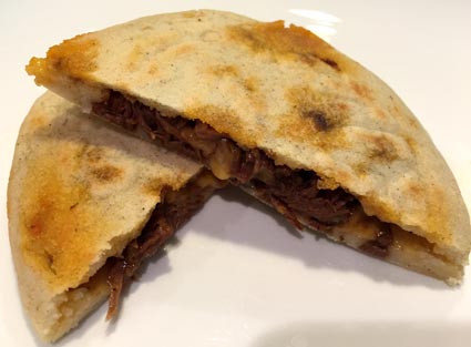 Ker res nikoli ne veš, je včasih dobro probati kako jed, ki si jo že odpisal. In pri naši hiši je bila odpisana koruzna moka Masa. Včeraj so imeli v moji ljubi trgovini za degustacijo "pupuse". V bistvu so polnjene arepas, popečene v ponvi, originalno iz "rodne dežele" mojega ljubega, El Salvador.