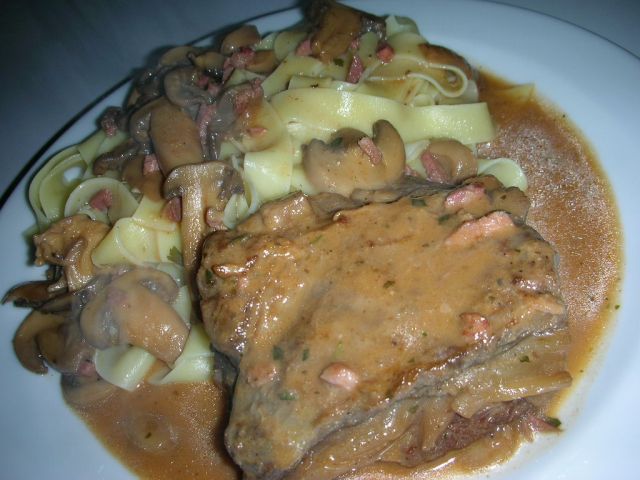 Danes goveja juha z domačimi rezanci, svinjski medaljoni, široki rezanci s smetanovo omako s šampinjoni in radič s fižolom. Za sladico pa je zmanjkalo časa.