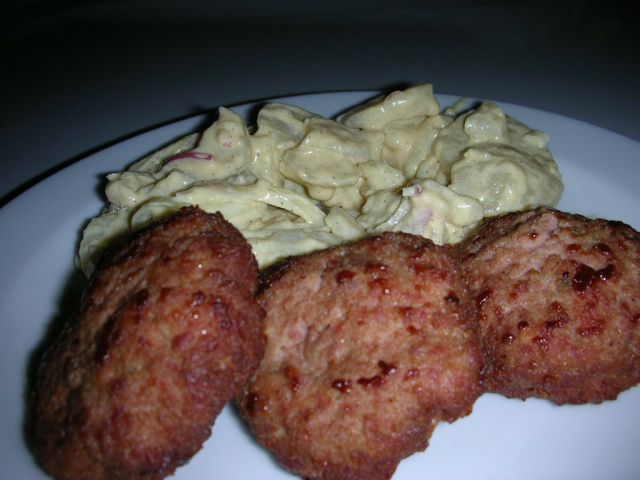 Danes sva midva imela: krompirjevo solato z gorčico in majonezo, zraven polpete