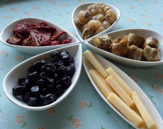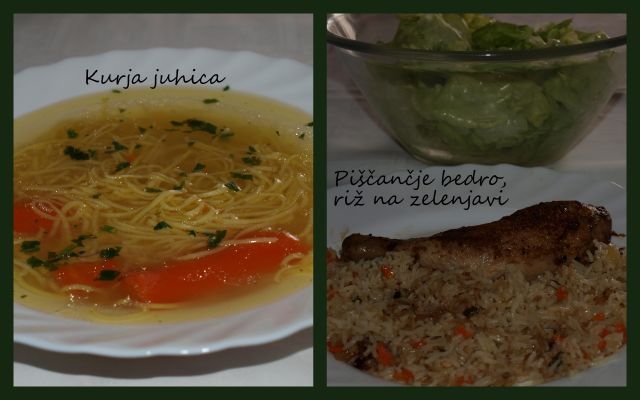 Kreman juha iz kopriv in čemaža, s smetano in cvetovi romanesko cvetače, blitva (in malo čemaža) s krompirjem, pečene orade, motovilec, radič in regrat v solati. Pomlad je in okoli hiše mimogrede nabereš marsikaj za kosilo.