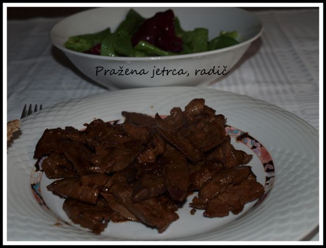 petek (jaaa): telečja jetra, z veliko čebule in marajonom, praženo, pa sosed kruh, hrastoveljski refošk