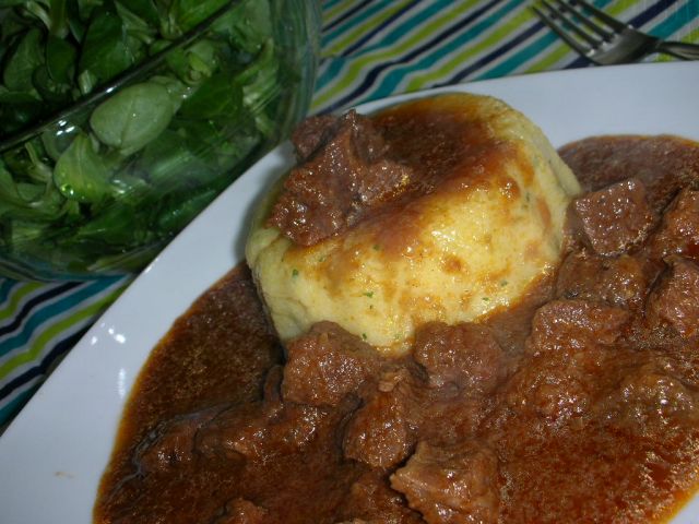 danes govedina s česnom (po Mopsikino), njoki in zelena solata