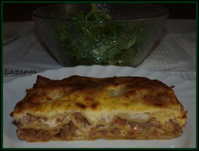 Paradižnikova juha (iz shrankov, po mojem receptu) z rezanci, z ocvirki zabeljen fižol sivček in solata iz nekja vrst zelene solate: kristalka, hrastov list, ena rjava,......domače pridelave), z bučnim oljem, seveda. Ne zamenjam zlepa za kak zrezek.